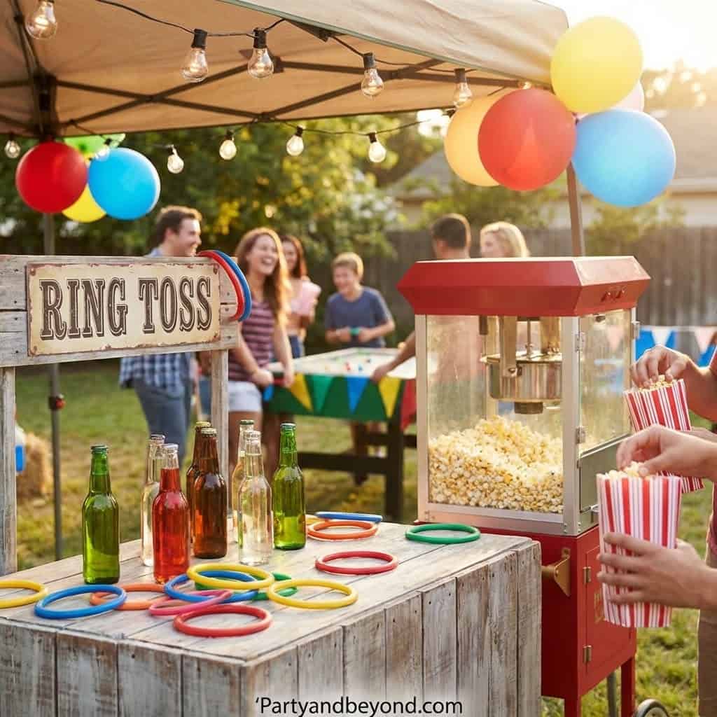 Looking for something energetic and colorful? A backyard carnival party brings instant joy and nostalgia. Set up simple game booths like ring toss, balloon darts, or bean bag throws to create that fairground feel.