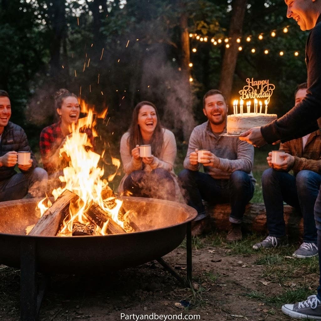 Looking for something cozy and intimate? A bonfire birthday creates a warm gathering centered around conversation and storytelling. Arrange chairs or blankets in a circle and keep the lighting soft.