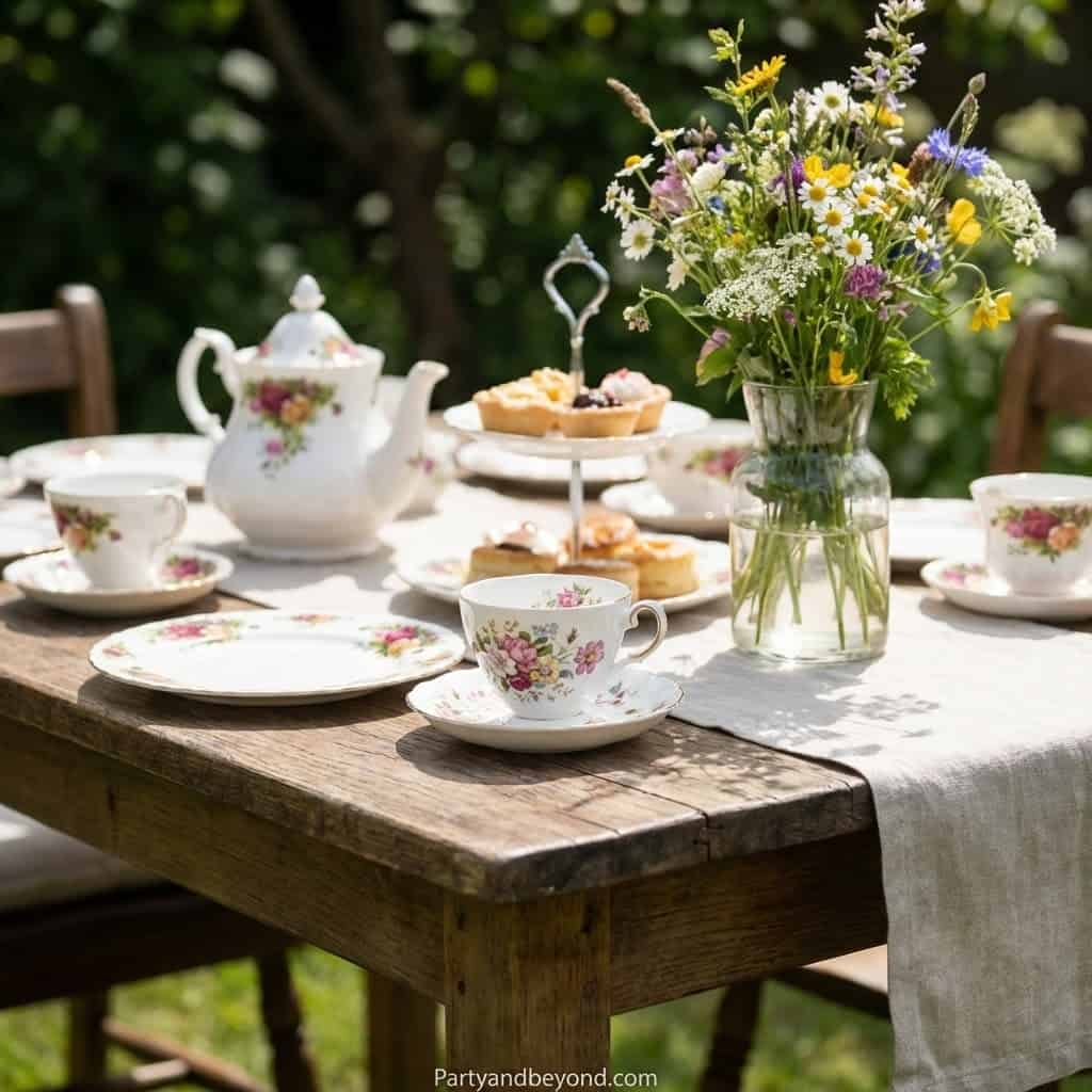 A tea party outdoors feels elegant yet approachable. Use floral tablecloths, vintage cups, and soft decorations to create a charming setup.
