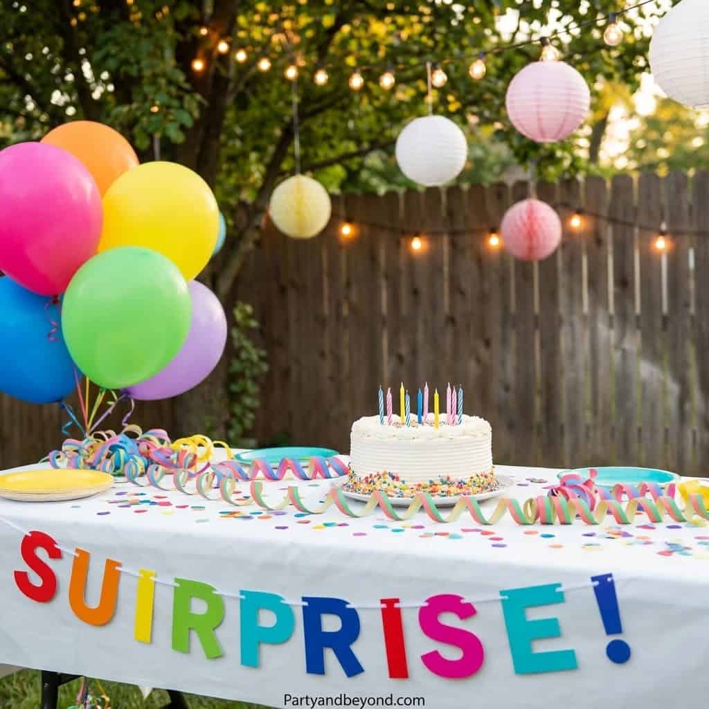 Sometimes the idea isn’t about activities — it’s about emotion. A surprise decorated backyard party focuses on creating a beautiful reveal moment.