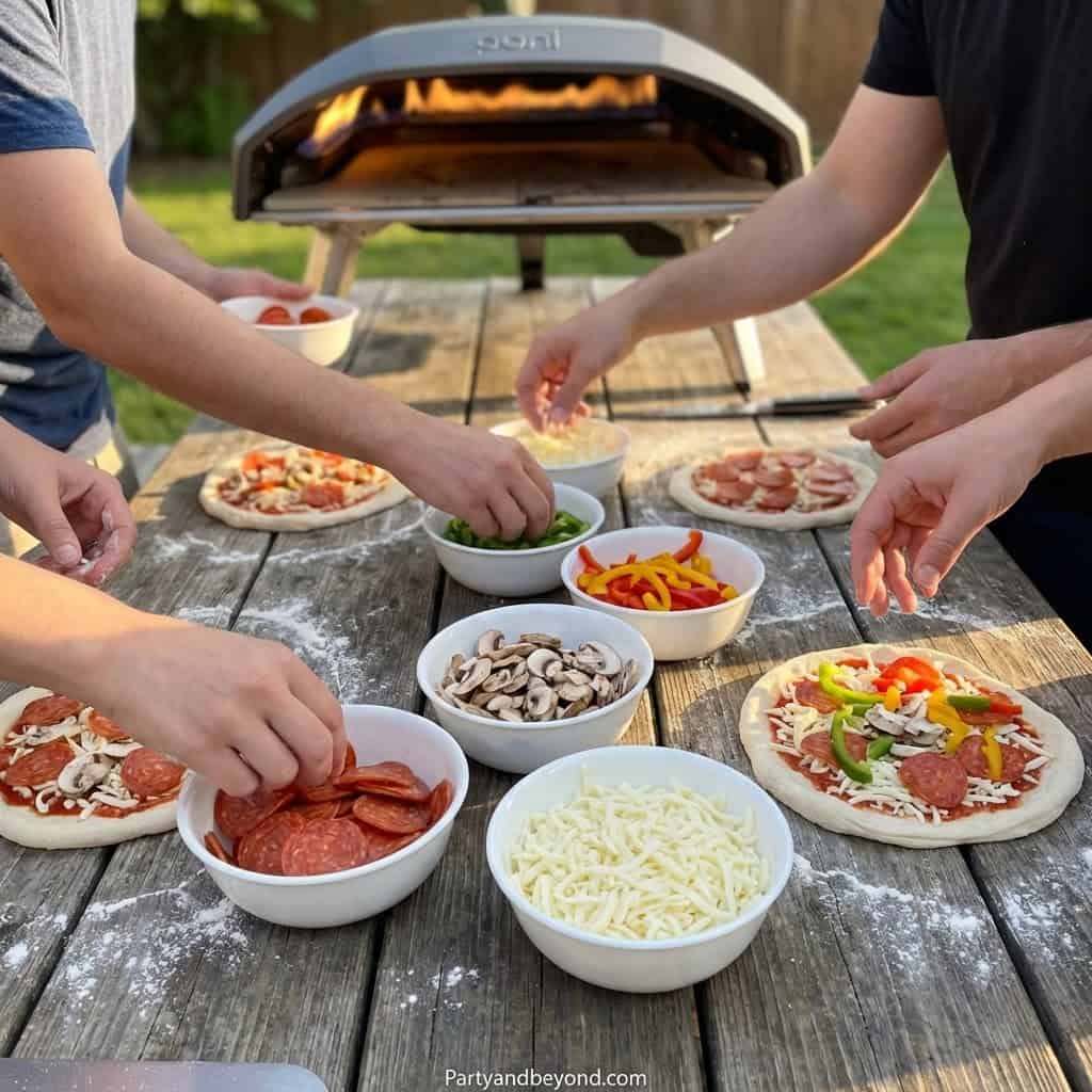 This idea works well for both kids and adults because food becomes the activity. While pizzas cook, people chat, laugh, and compare toppings — making the experience social and memorable.