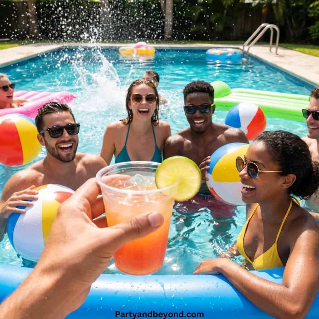 Safety comes first, of course. Provide towels, sunscreen, and shaded seating so guests can relax between swims. Music in the background enhances the lively mood.