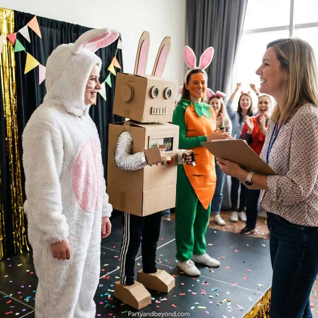 This idea is playful and encourages participation from both kids and adults. You can even provide props like bunny ears, tails, or masks for those who arrive without a costume.