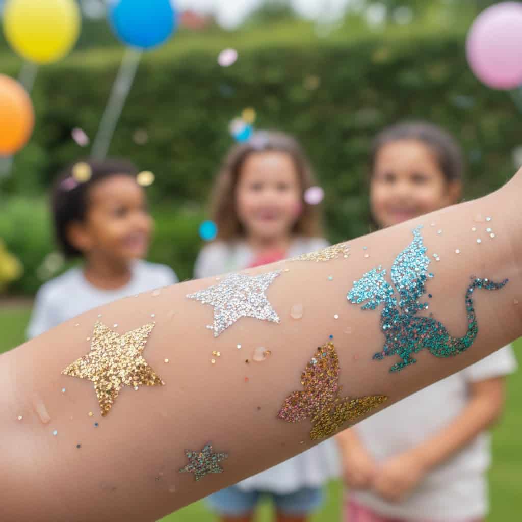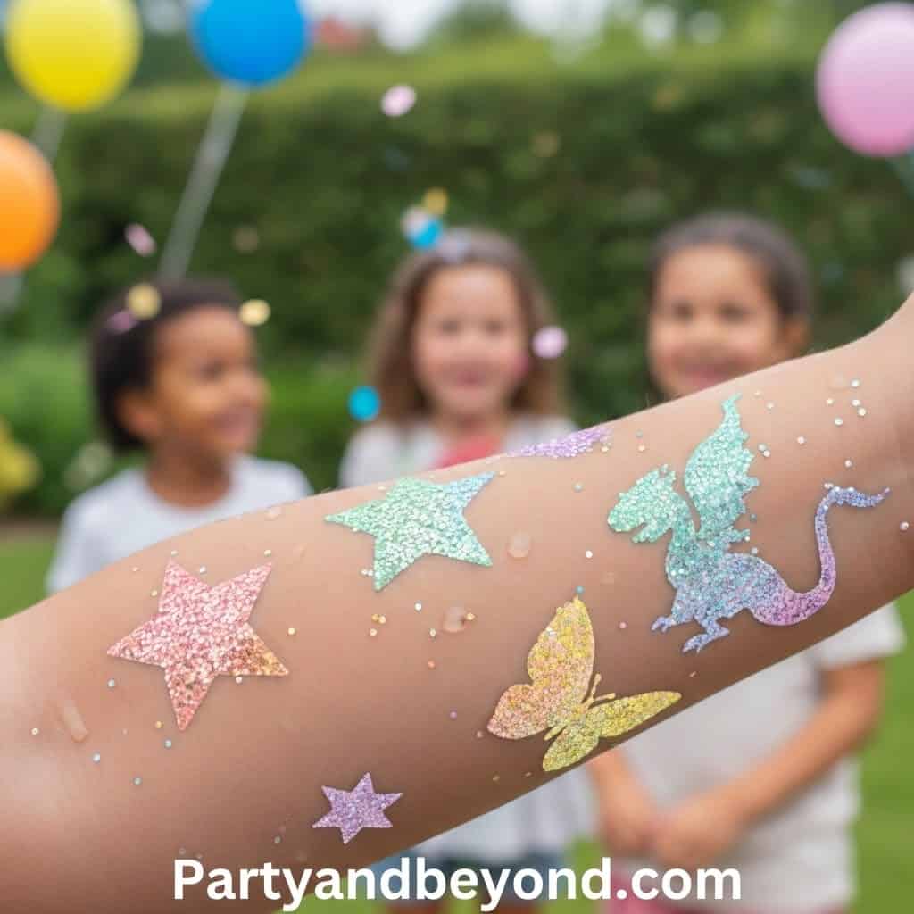 Set up a small glitter tattoo station with safe, skin-friendly products. Choose shapes like stars, hearts, and butterflies.