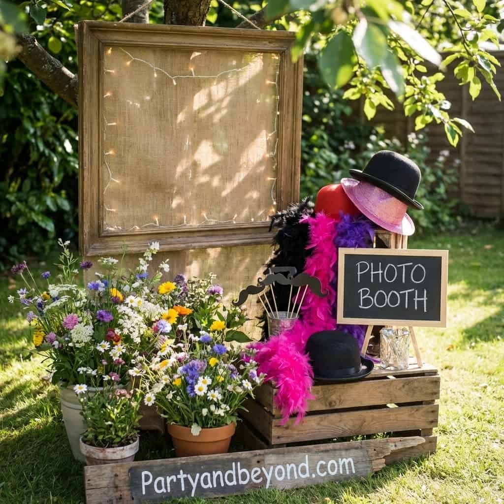 Use a floral arch, vintage chair, or backdrop with lights. Add props like hats, signs, or baskets.Guests naturally gather there throughout the event. It adds entertainment without needing a structured activity.