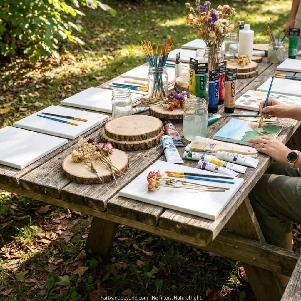 Provide mini canvases, paints, or simple DIY kits. Guests enjoy expressing themselves while chatting.