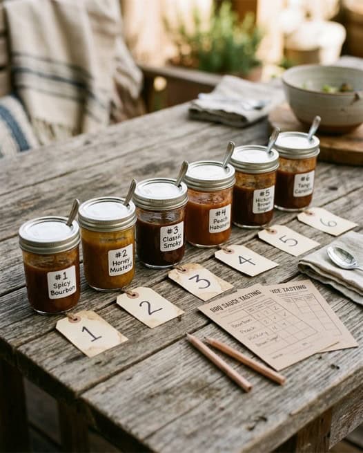 Line up six to eight sauces in small mason jars — store-bought, regional, homemade — and number them. Blindfold the tasters. Have everyone rank them on a simple scorecard. The grill master dad will take this seriously; the rest of the family will find it hilarious. At the reveal, everyone learns whether he actually likes Kansas City sweet more than Memphis dry rub, or if he’s been lying to himself for 30 years.