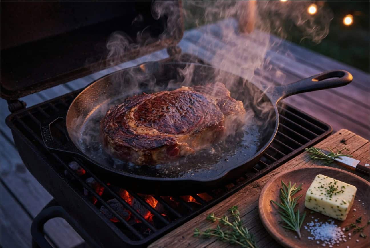 Premium cut steaks, a hot cast iron grill, and a small guest list. Hand him the tongs, pour him a whiskey, and let him cook. Everyone eats when he says it’s ready. Simple menu on the side — grilled asparagus, baked potatoes with real butter, a Caesar salad someone else made. The move here is reverence, not effort. He gets to cook the thing he loves while being treated like a guest of honor.