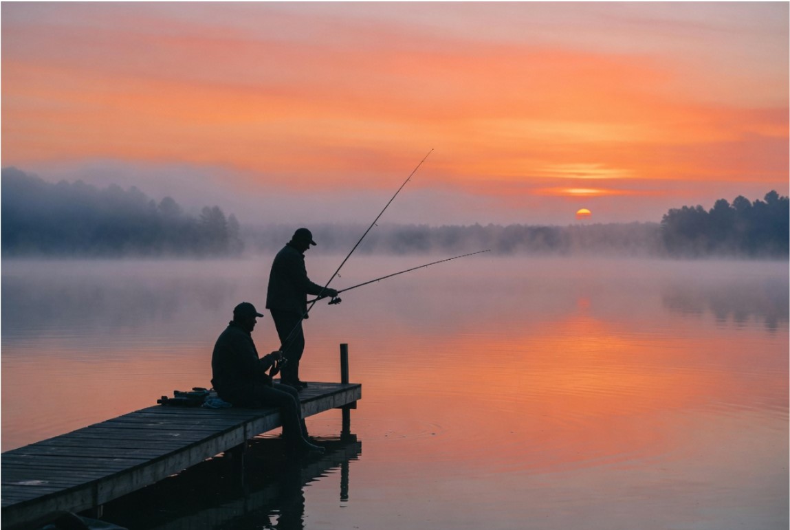 Early morning on the water. Two rods, one cooler, minimal talking. Keep it simple and short — most dads don’t actually want eight hours of fishing, they want two hours of fishing and then the rest of the day at home. Return by 9 AM to a hot breakfast on the deck: eggs, bacon, toast, good coffee. The transition from the quiet of the water to the warmth of a home-cooked breakfast is what makes this land.