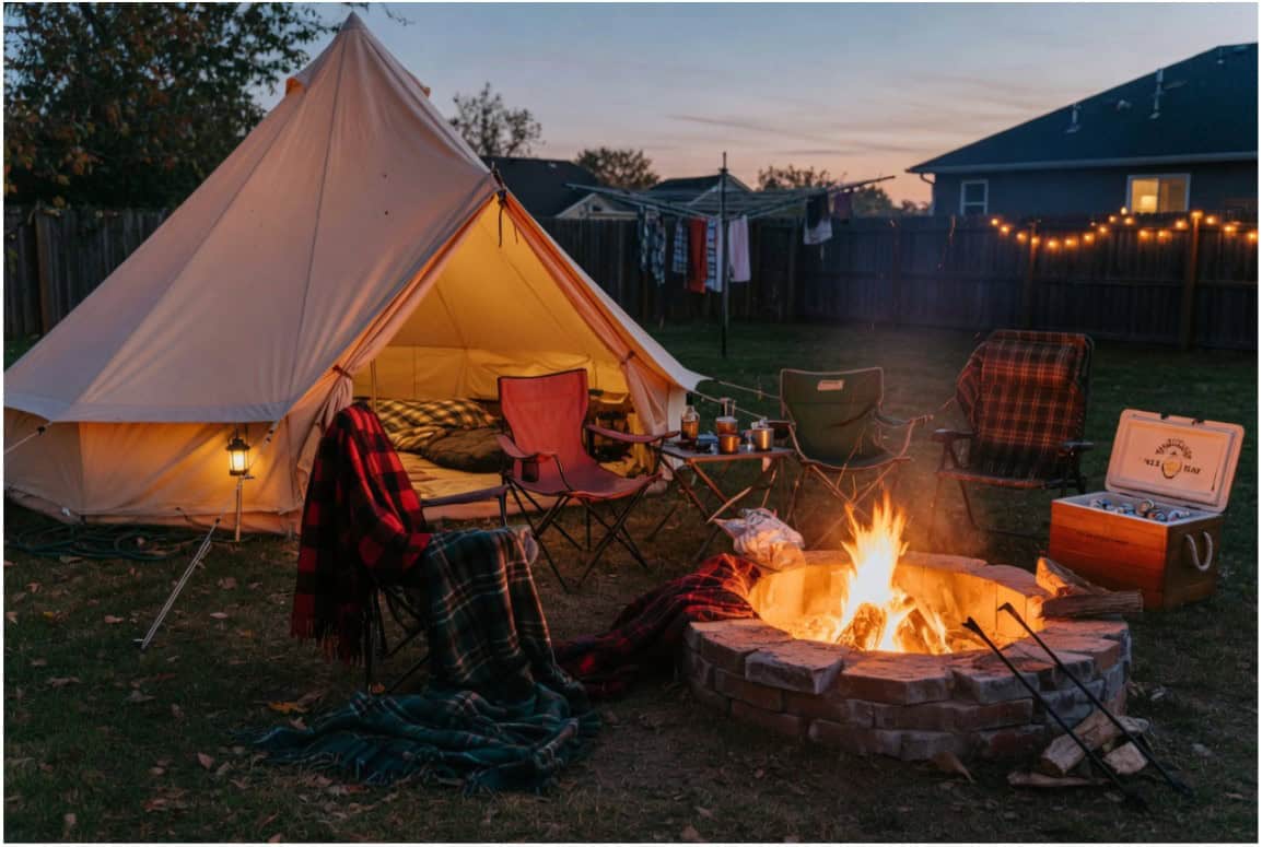 6. Set Up a Backyard Campout With Tent and Fire Pit