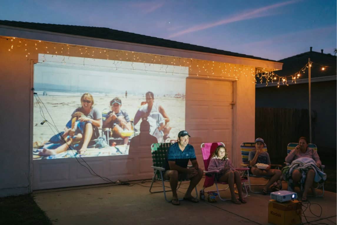 19. Project a Memory Slideshow on the Garage Wall at Dusk