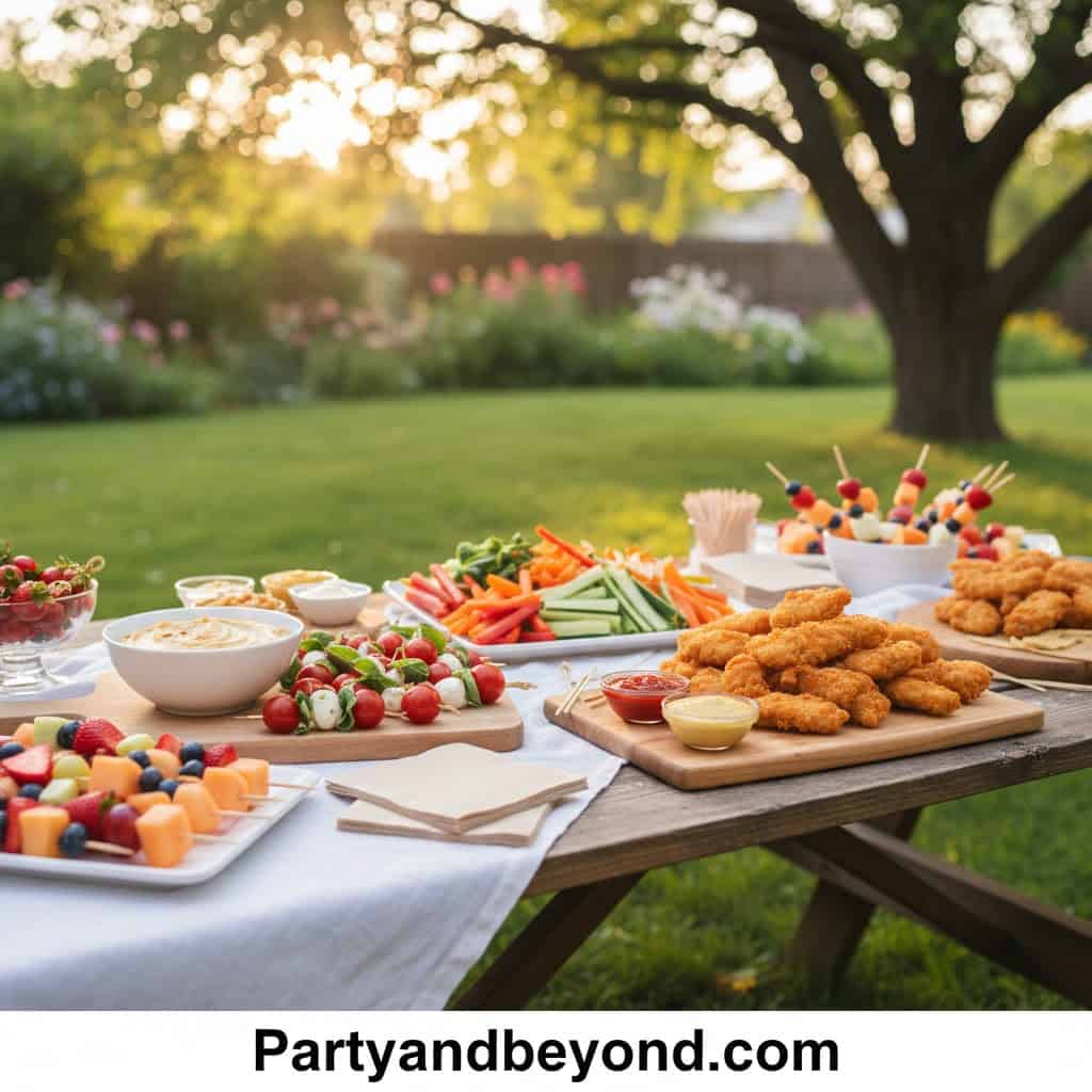 Serve simple finger foods and refreshing drinks. A picnic-style birthday party feels intimate and relaxed.