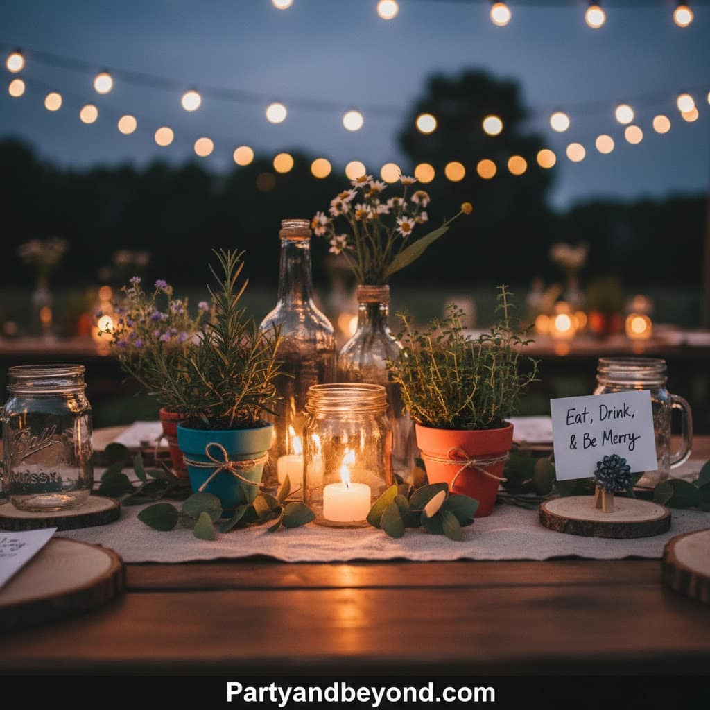 Glass jars with candles, small potted plants, or simple flowers can decorate tables beautifully.