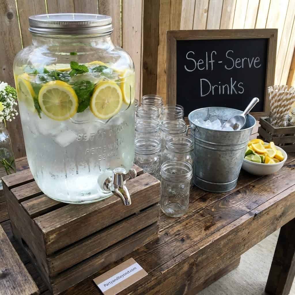 Use large dispensers for lemonade or mocktails. Add sliced fruits inside for visual appeal.