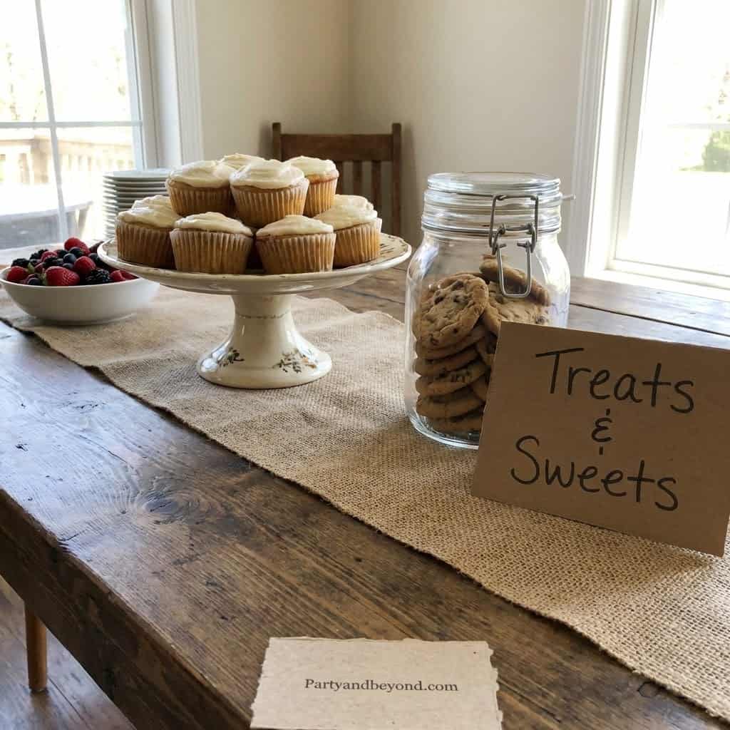Arrange cupcakes and sweets neatly. Add a small banner behind.