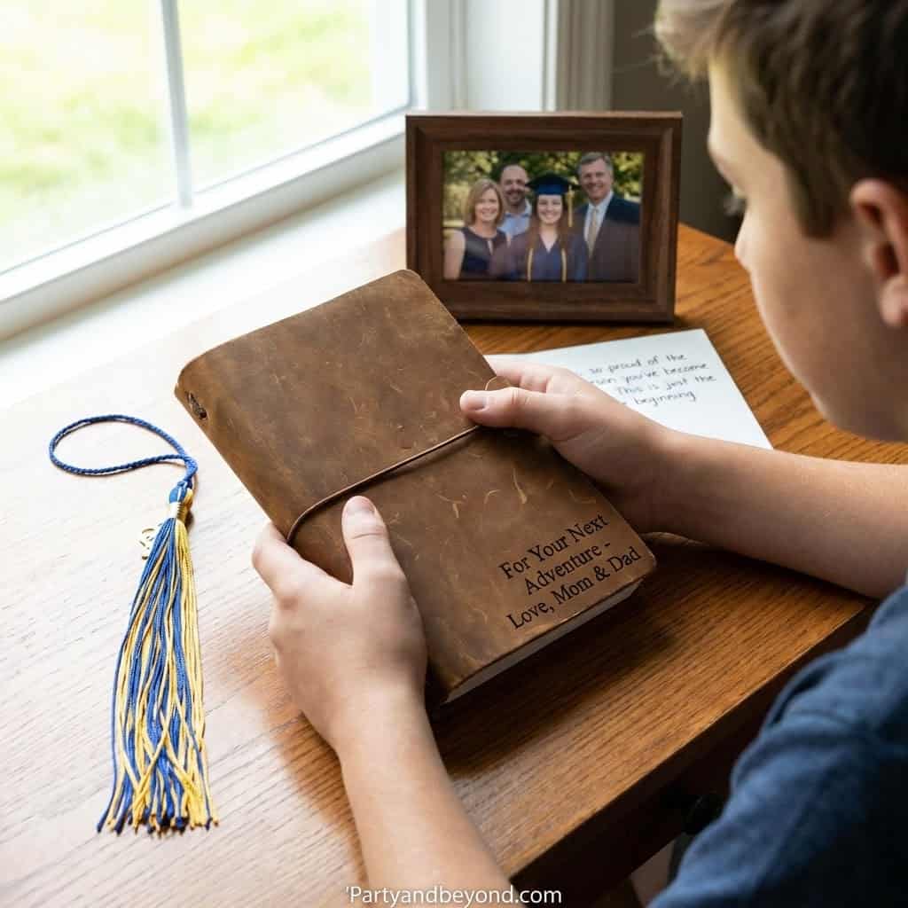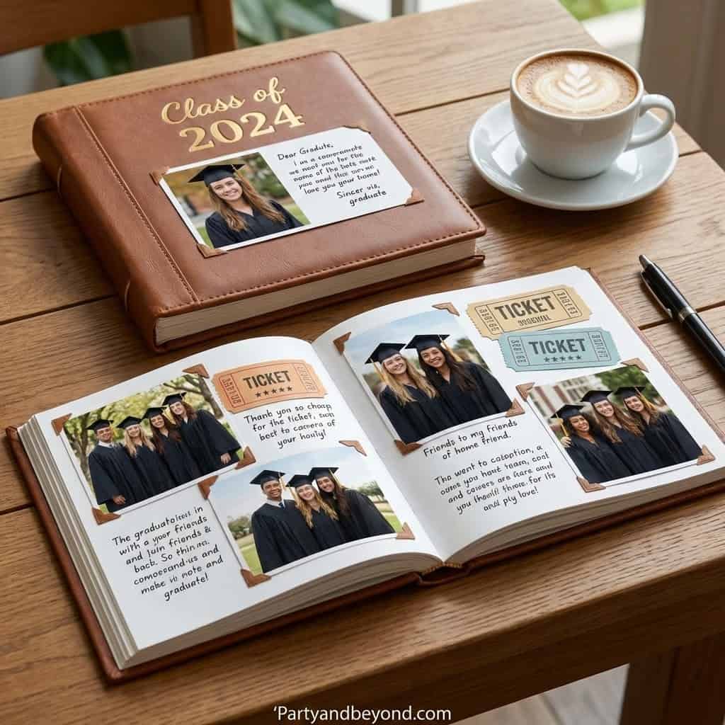Create a photo album filled with childhood memories, school events, achievements, and graduation photos. Add handwritten notes or captions for a personal touch.