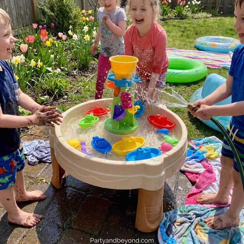 You don’t need a pool — just a few creative setups. Water balloon tosses or sponge relays keep everyone laughing.