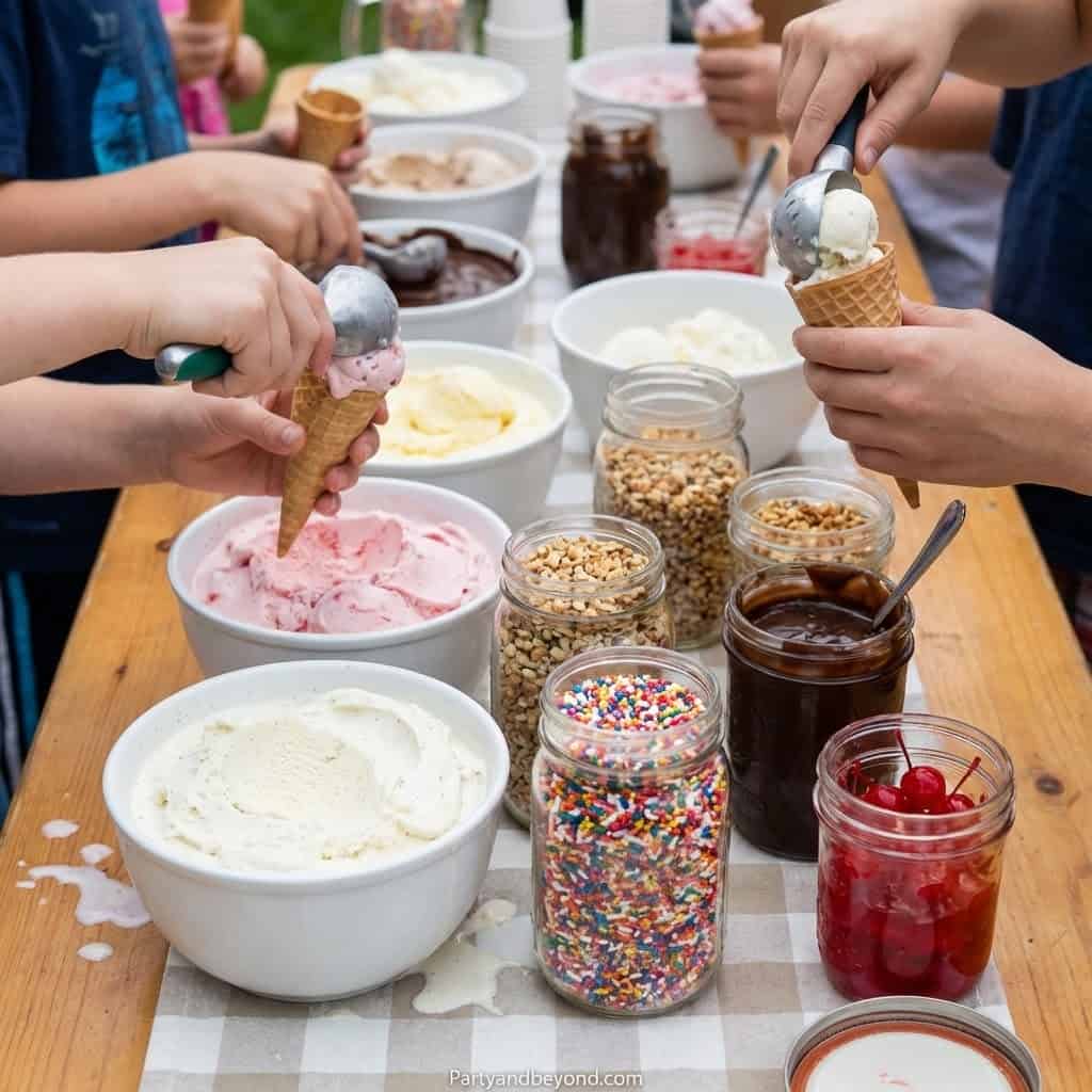 Set up a toppings bar with sprinkles, sauces, and fruits. Kids build their dream sundae.