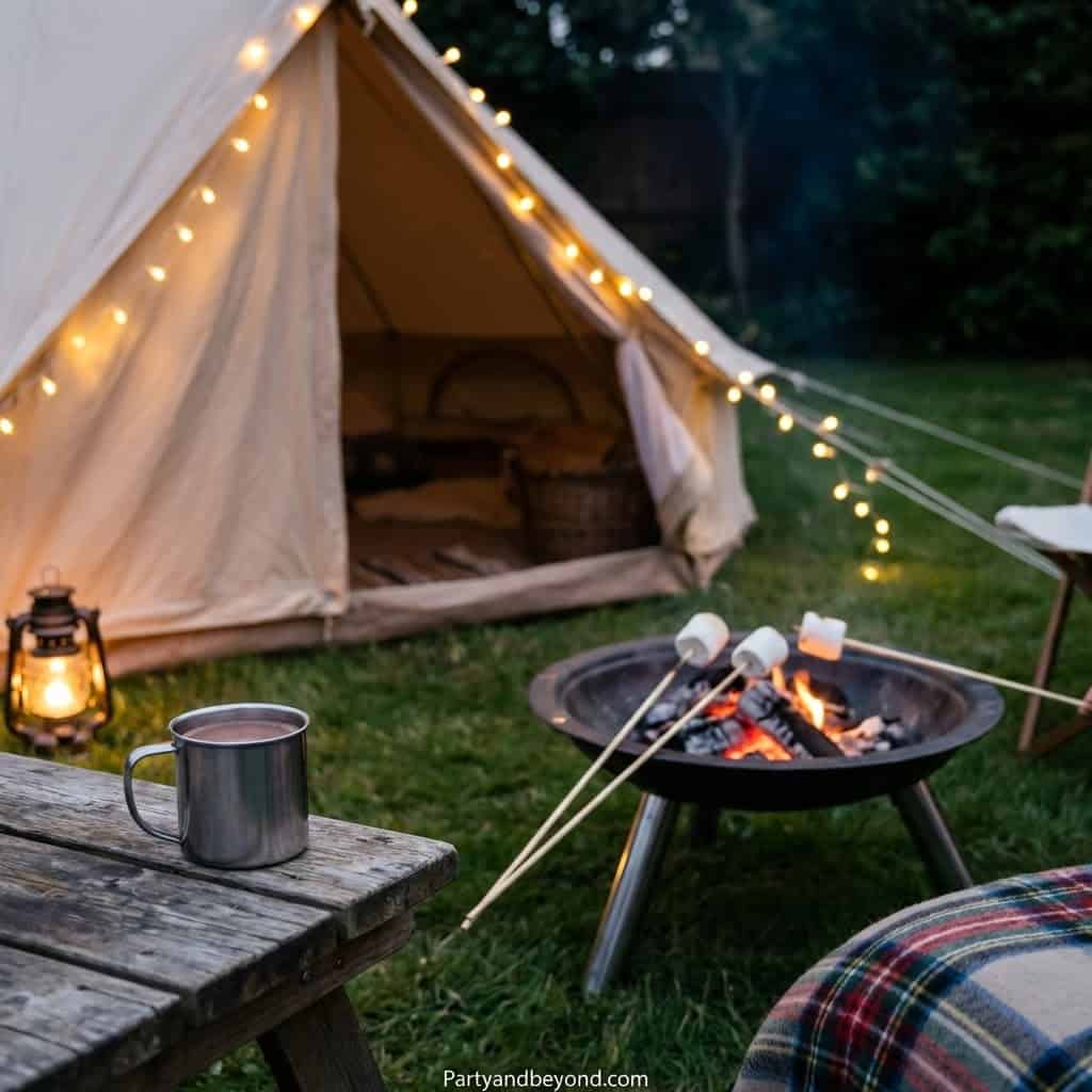 Backyard camping delivers the thrill of outdoors without the stress of an overnight trip. Pitch tents, lay out sleeping bags, and let kids explore “camp life” during the party.