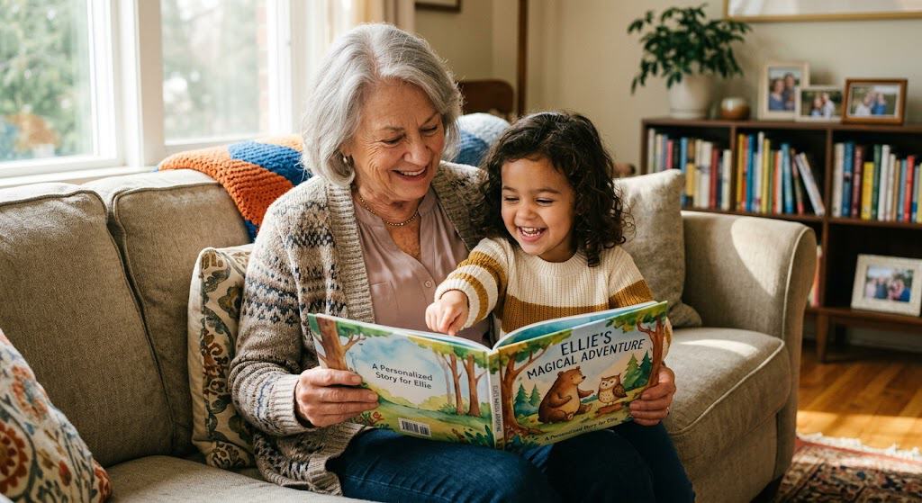 Present the book at a moment when she can read it aloud to her grandchildren or youngest children — watching their faces light up when they hear their grandmother’s name or their own name in a beautifully illustrated story is one of those small, perfect moments of family life that nobody forgets. It is a gift for her and simultaneously a gift for the smallest people she loves most.