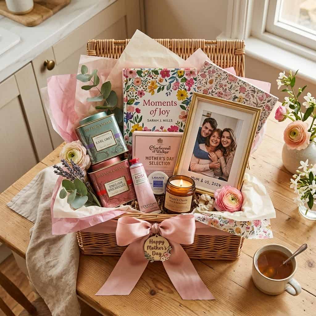 There is a version of this gift that every gift shop in America sells — pre-assembled baskets full of bath bombs, generic lotions, and chocolates that nobody specifically requested. And then there is the version I am describing here, which is something entirely different: a basket built from scratch, item by item, containing exclusively things that are specific and personal to your mom — her actual favorite things, chosen because you know her.