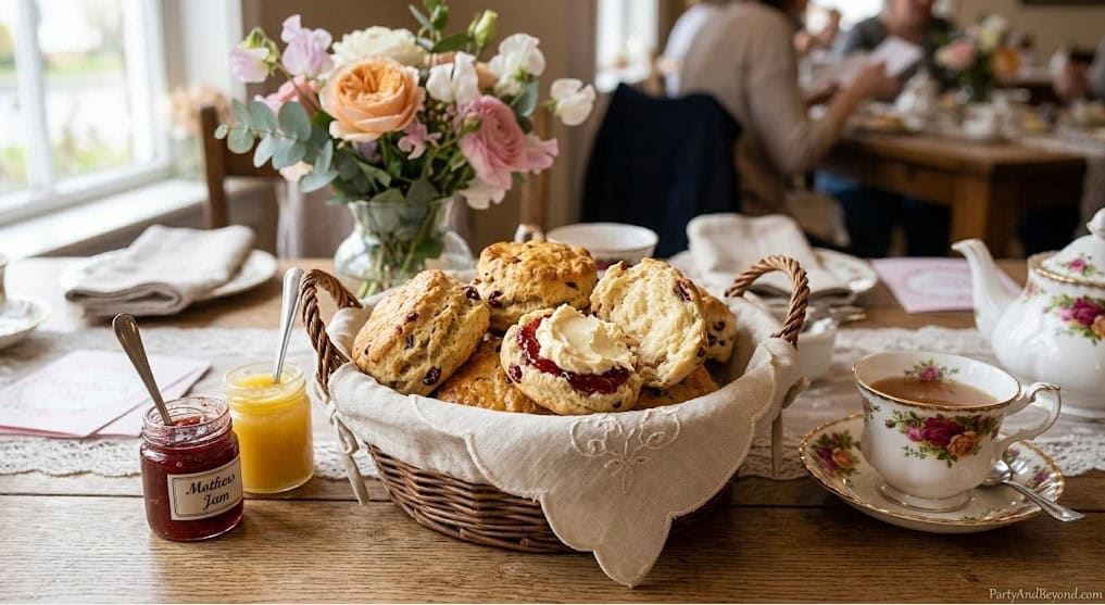 Serve warm in a basket lined with a cloth napkin alongside small jars of strawberry jam and lemon curd, and a bowl of clotted cream (or whipped cream if clotted cream is unavailable). The contrast of a warm, buttery scone with cool, thick cream and sweet jam is one of the greatest simple pleasures in the culinary world. Your mom will feel like she has been transported to a London tea room without leaving her dining table.