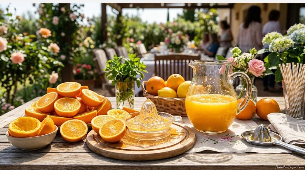 A mimosa bar is the single decoration that doubles as a drink station and triples as a conversation starter. It is visually stunning, endlessly customizable, and makes every guest feel like they are at a champagne brunch at a five-star hotel — even though the entire setup costs less than $25.