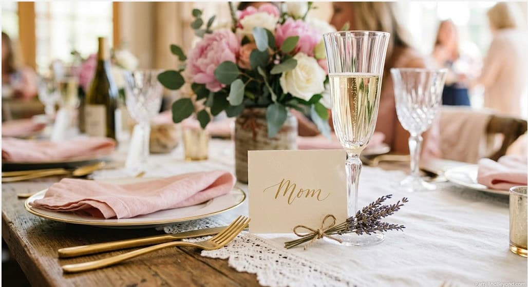 At each place setting, place a small card with the guest’s name on the front and a personal note on the inside — something specific you appreciate about them or a memory you share. For mom’s card, write something longer and more heartfelt. These cards take five minutes to create and cost nothing, but they transform a meal into a moment. When your mom picks up her card and reads a personal note written in your handwriting, the brunch stops being about food and becomes about love.