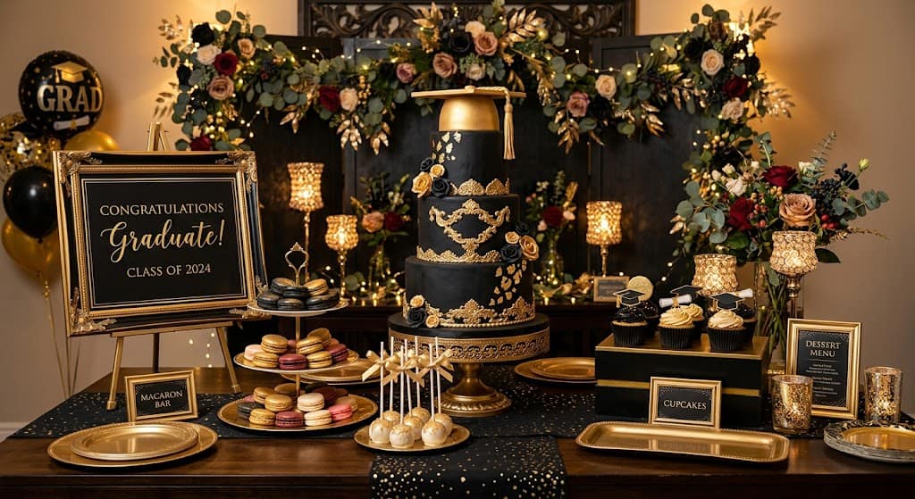 Add a custom cake shaped like a graduation cap and a station where guests can write messages on a “Class of [Year]” banner. Simple, meaningful, memorable.