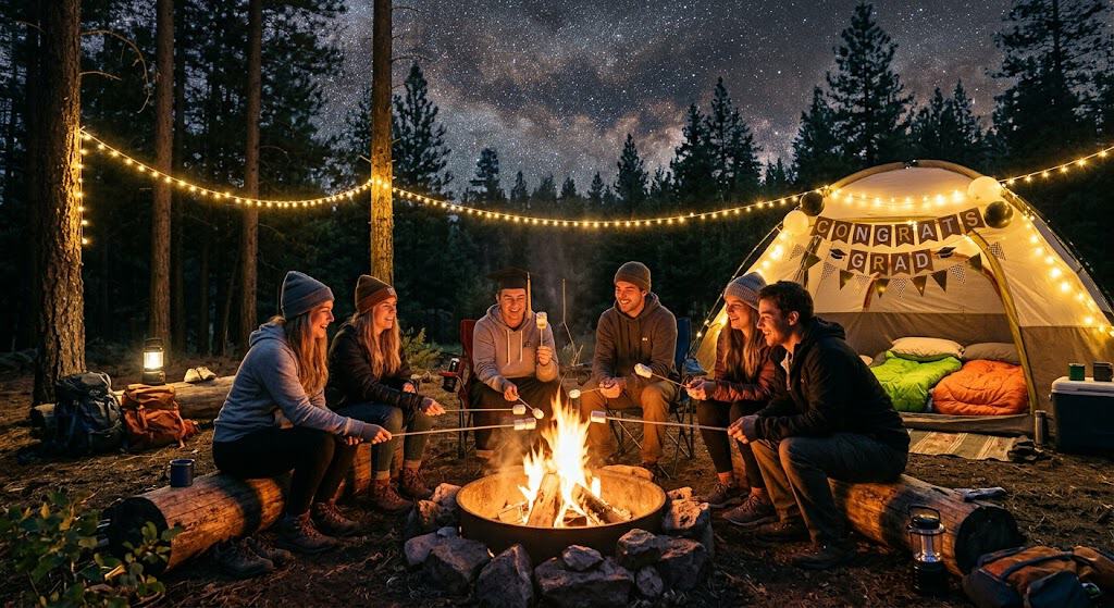 Who says the graduation party has to happen in a backyard or banquet hall? Pack your bags and head into nature for a weekend camping trip that doubles as a graduation celebration.