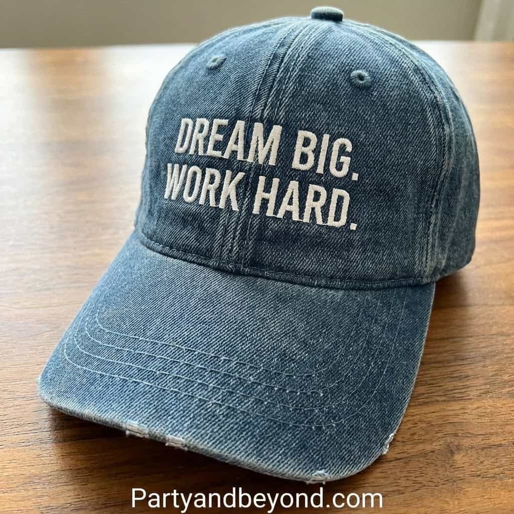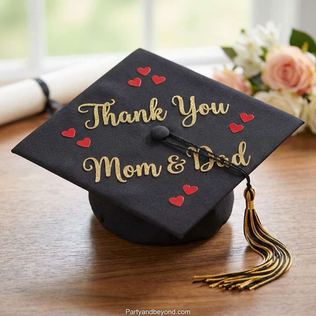 A heartfelt thank-you message adds emotional depth to your cap. Write something like “I did it for us” or “Thanks, Mom & Dad.”