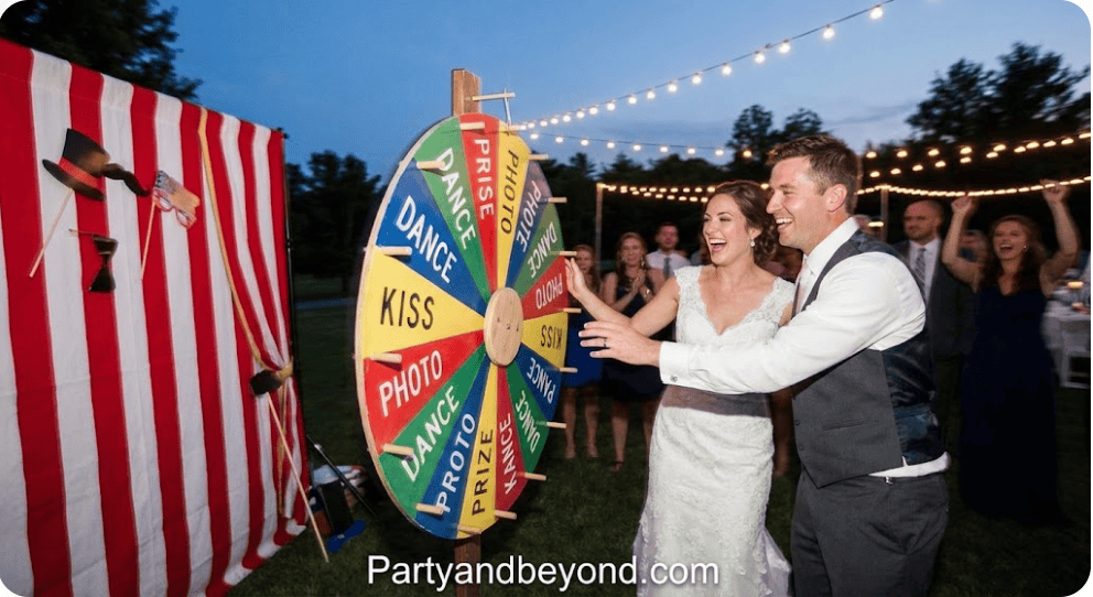 How do you get guests into the photo booth without dragging them? Give them a wheel. A “Spin for a Pose” wheel turns shy couples into performers because the wheel takes the decision-making off their shoulders.