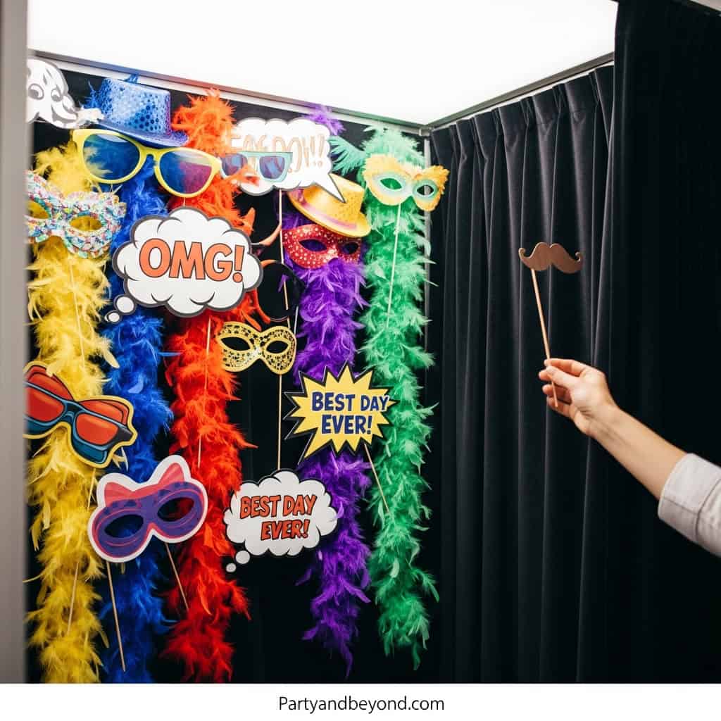 Create a photo booth with football helmets, sunglasses, and fun signs for social sharing.
