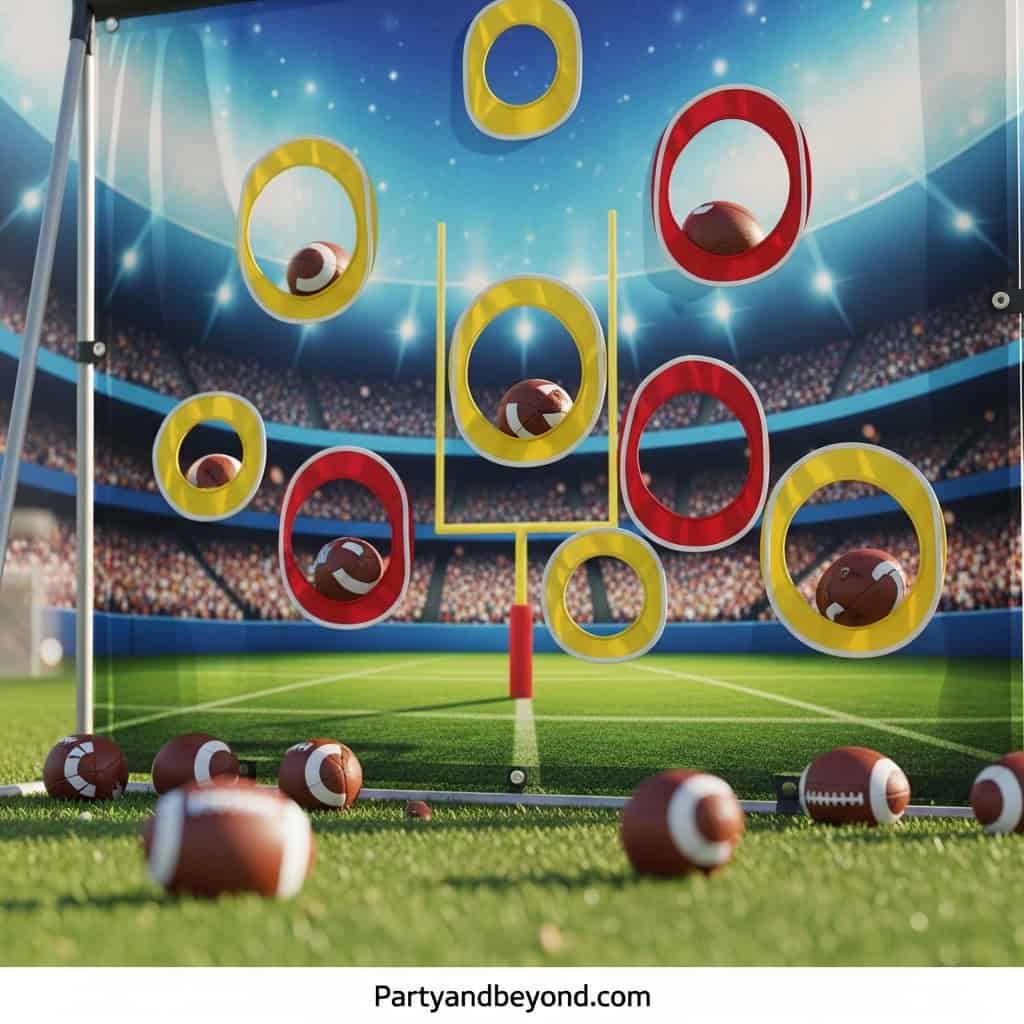 The Football Toss Game is one of the most exciting and interactive parts of 21 Game-Day Décor & Interactive Activities for a Super Bowl Bash because it adds physical fun and friendly competition to your party. You can easily set up a mini football toss target game in your backyard, living room, or party space using simple materials like buckets, hoops, or cardboard targets.