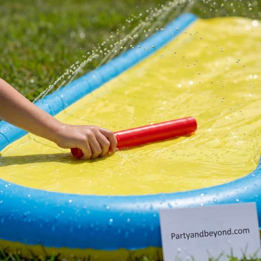 Why run when you can slide your way to victory? Set up a long slip ‘n slide in the yard and divide players into teams. Each participant slides down, races back, and tags the next teammate.