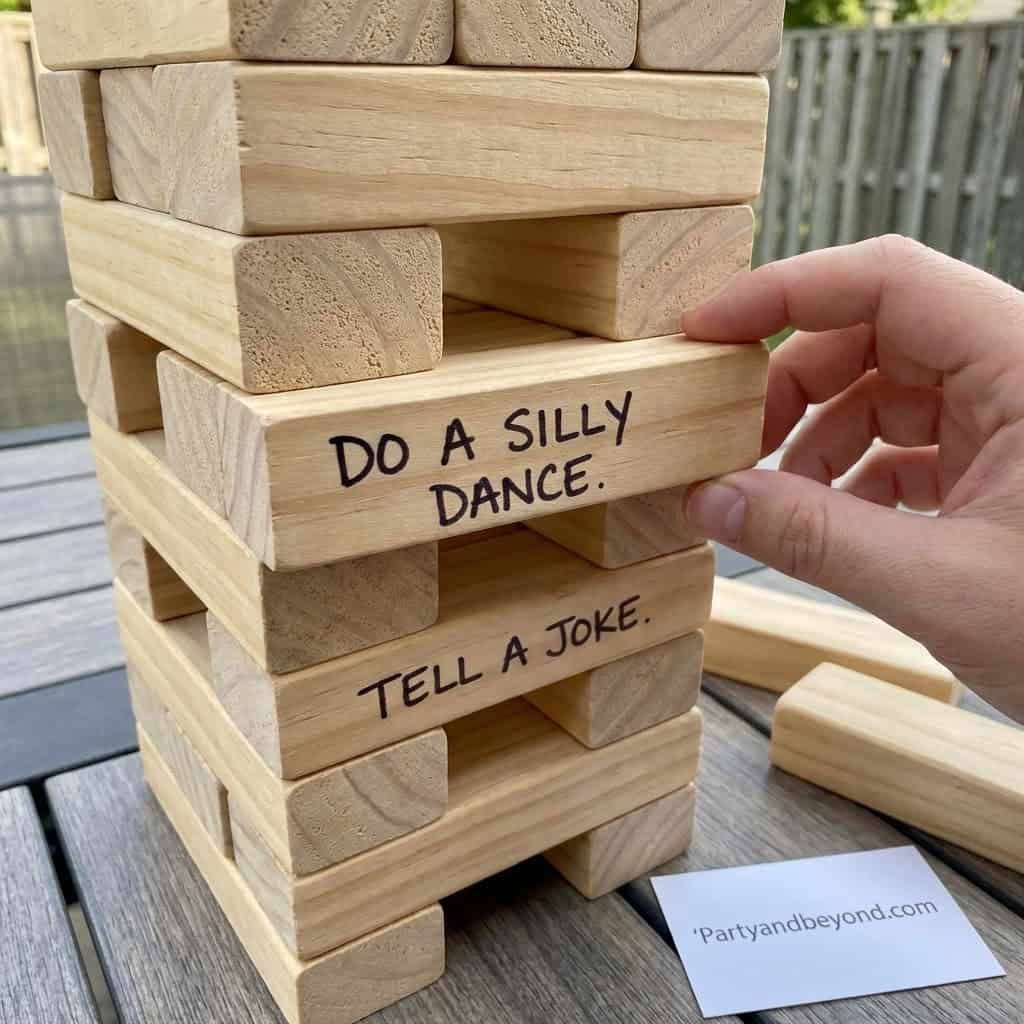 Jenga is fun, but adding hilarious dares takes it to another level! Write fun challenges on each block, like “Sing a song” or “Do ten jumping jacks,” to make every turn exciting.