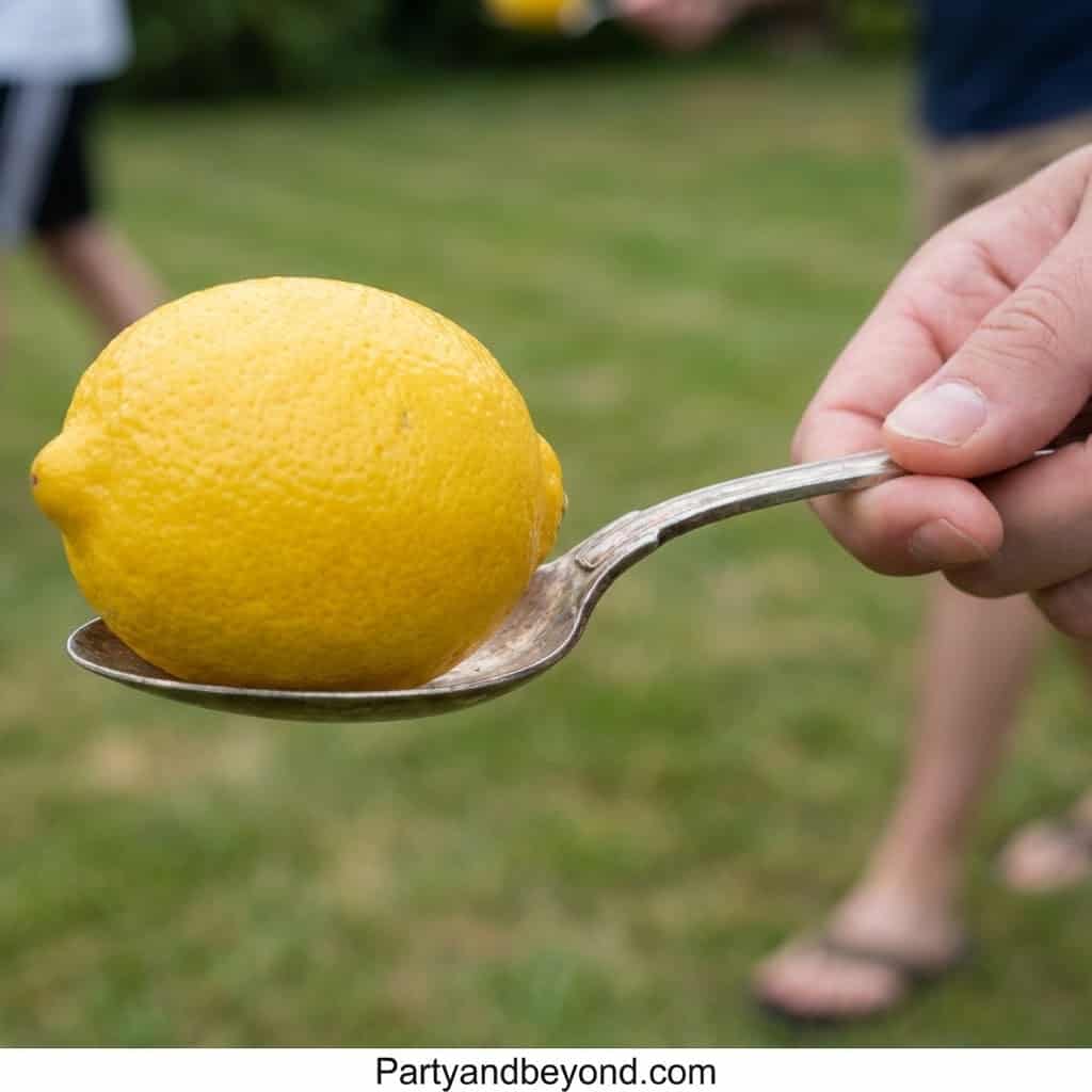 Balancing a lemon on a spoon is harder than it sounds! Players must hold a spoon with a lemon and race to the finish without dropping it.