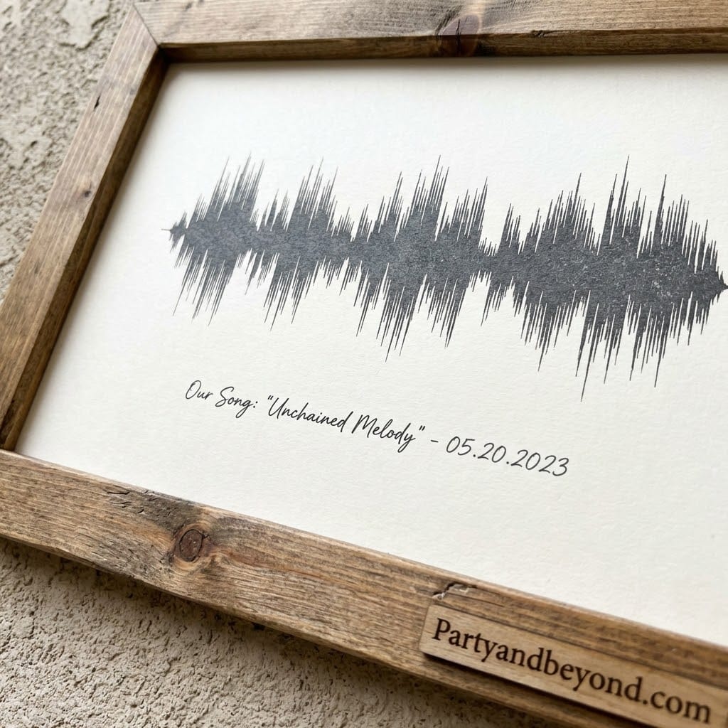 Sound wave art turns your voice or song into modern wall decor. It’s personal, artsy, and one-of-a-kind—just like your love.