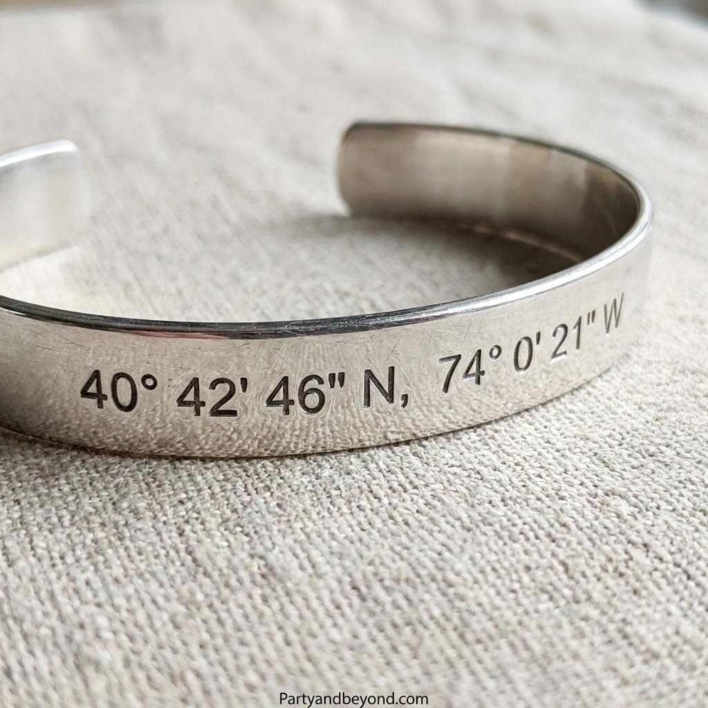 A coordinates bracelet is sleek and meaningful. Add the GPS location of a special memory—your first kiss, proposal, or wedding day.