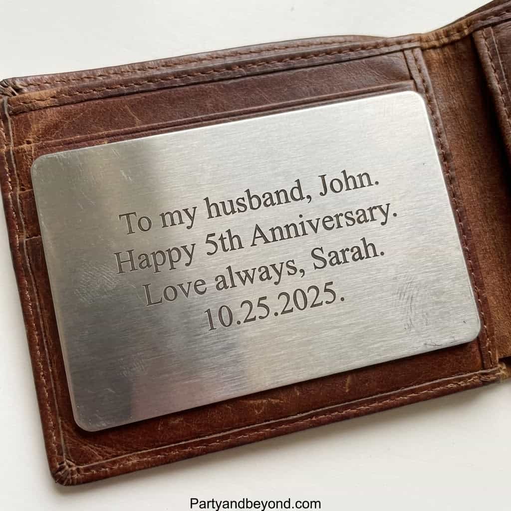 A metal wallet card insert turns an everyday item into a treasure. Slip a heartfelt message inside his wallet for a constant reminder of your love.