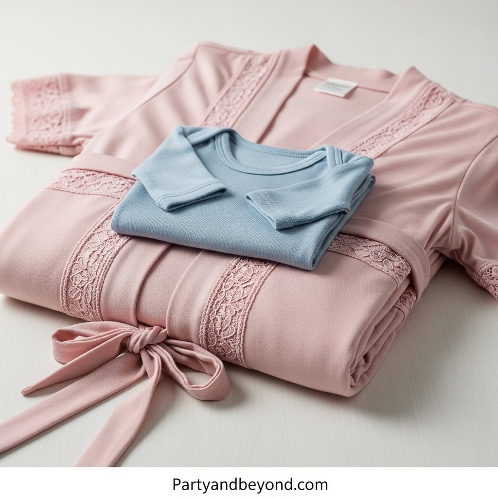 The robe keeps her feeling covered and cute while nursing or resting. The matching baby outfit creates those awwww-worthy photo moments.