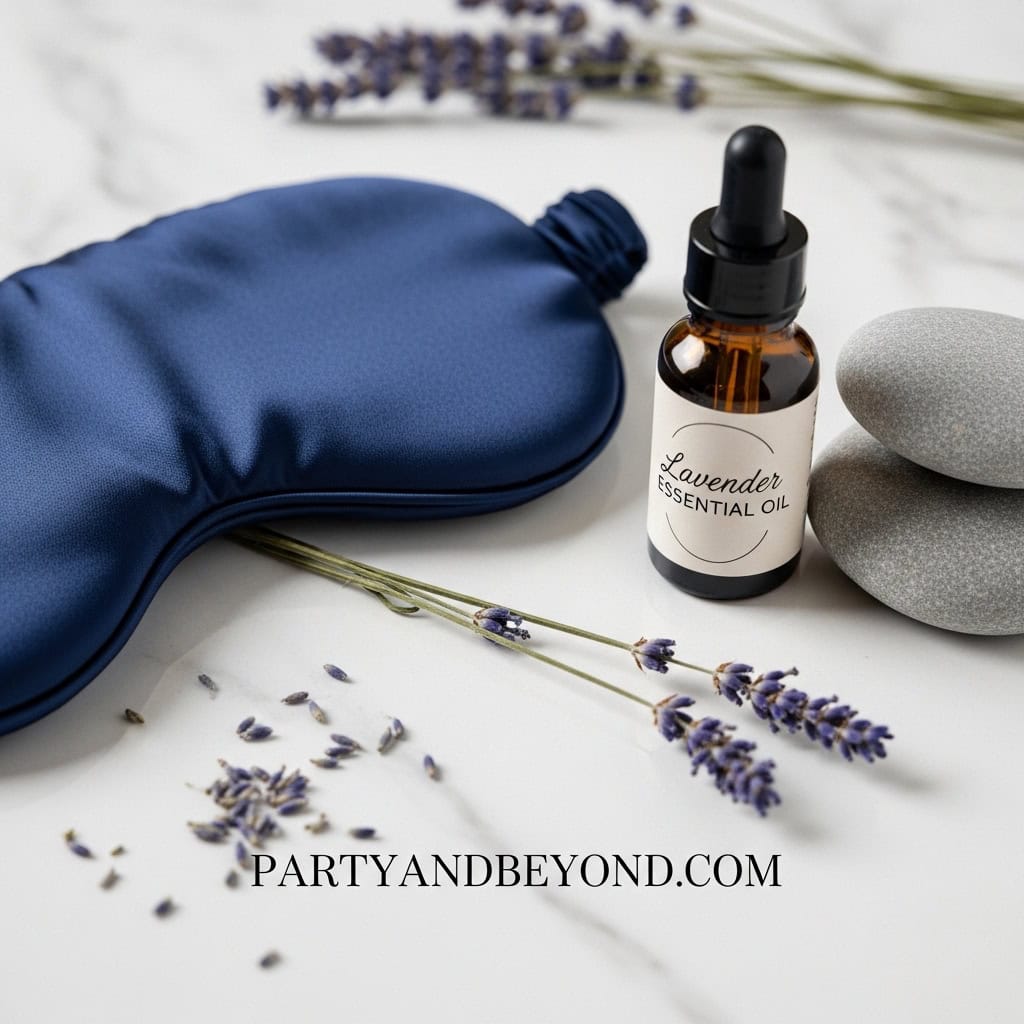 Lavender and chamomile scents help relax her mind before bed. A blackout mask blocks light for a deeper rest.