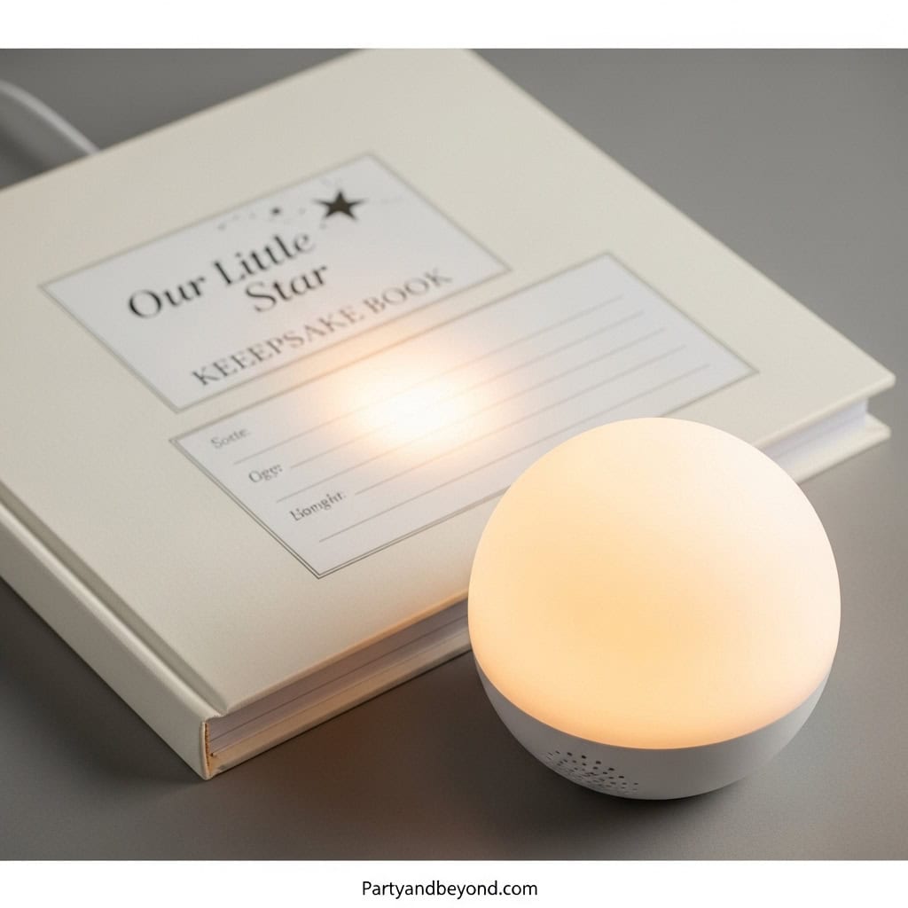 A white noise night light helps create a calming sleep environment and doubles as a gentle lamp during night‑time feedings. Pair it with a beautifully illustrated keepsake book like *When the World Was Waiting for You* — a heartfelt story the whole family can enjoy.