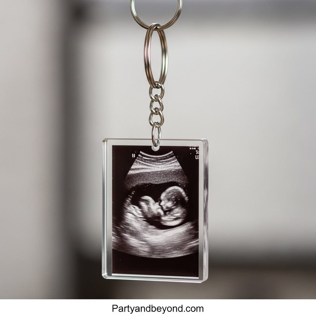 This miniature frame holds the ultrasound image or baby’s heartbeat waveform. It’s a sentimental keepsake that parents can carry on their keys or attach to a diaper bag.
