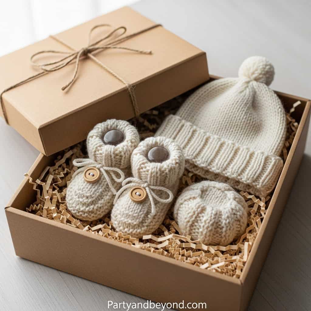Hand‑knitted booties and a hat keep a newborn warm. Look for soft, organic yarn in neutral shades. Handmade items carry sentimental value and last beyond the newborn phase.