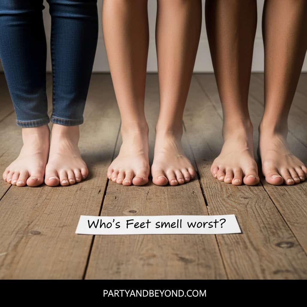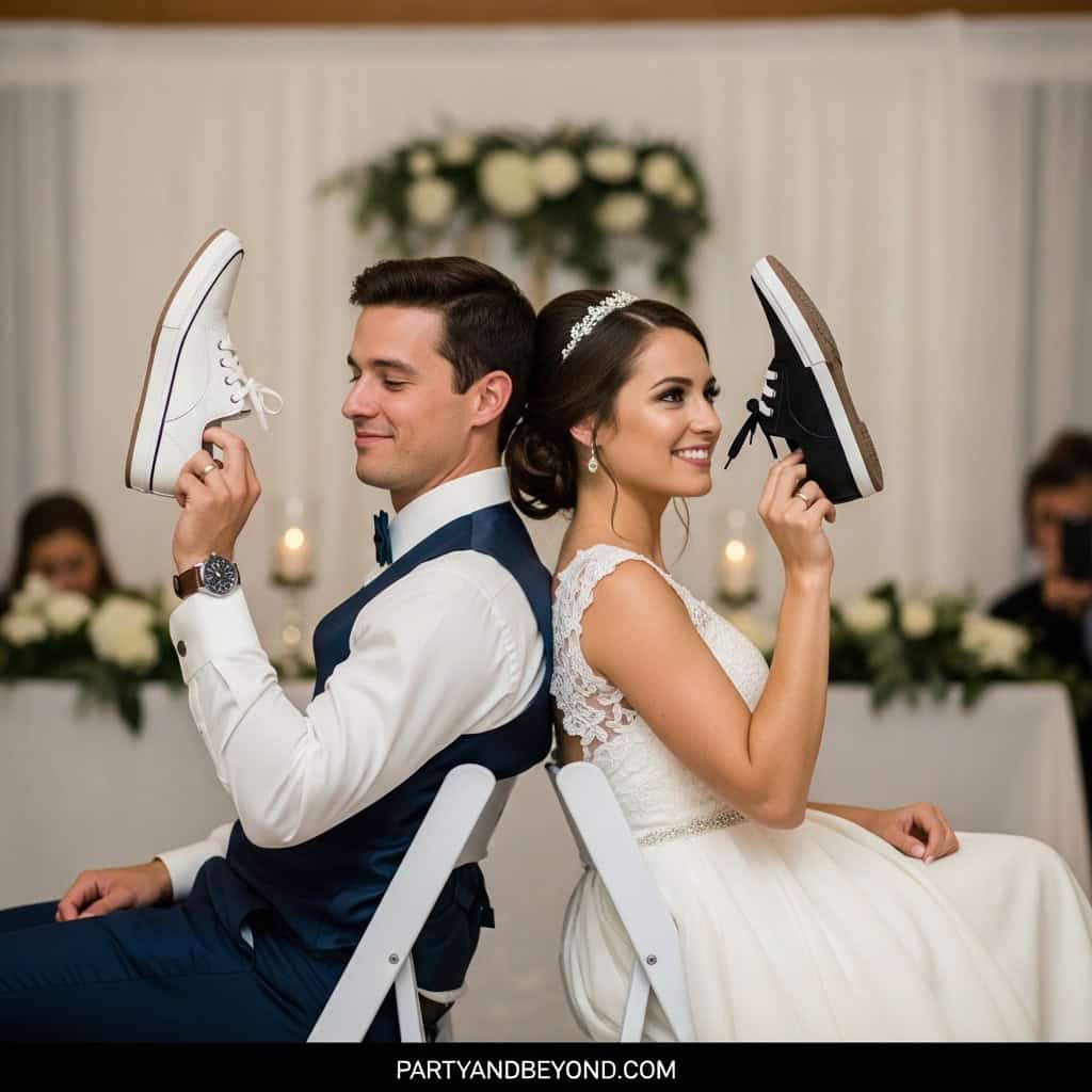 This wedding game is a hilarious icebreaker that guarantees lots of laughs. Guests are asked to guess whose feet might have the strongest odor, turning an awkward topic into a memorable moment.