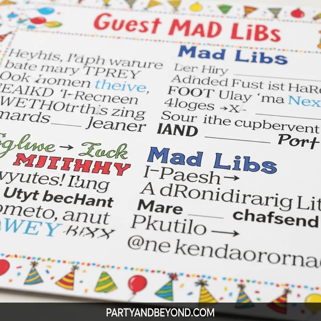 Guest Mad Libs is a fantastic way to get your guests laughing and interacting with each other. Create fill-in-the-blank cards with funny prompts for guests to complete. This game is a great icebreaker and ensures plenty of laughs throughout the evening.