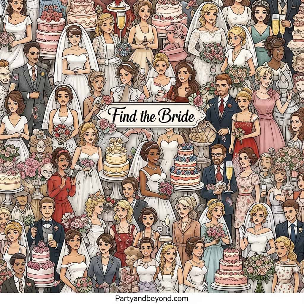 The “Find the Bride” game is a delightful and engaging activity perfect for weddings and bridal showers. Participants search for hidden items related to the bride, such as miniature wedding dresses or personalized tokens, creating a fun and interactive experience.